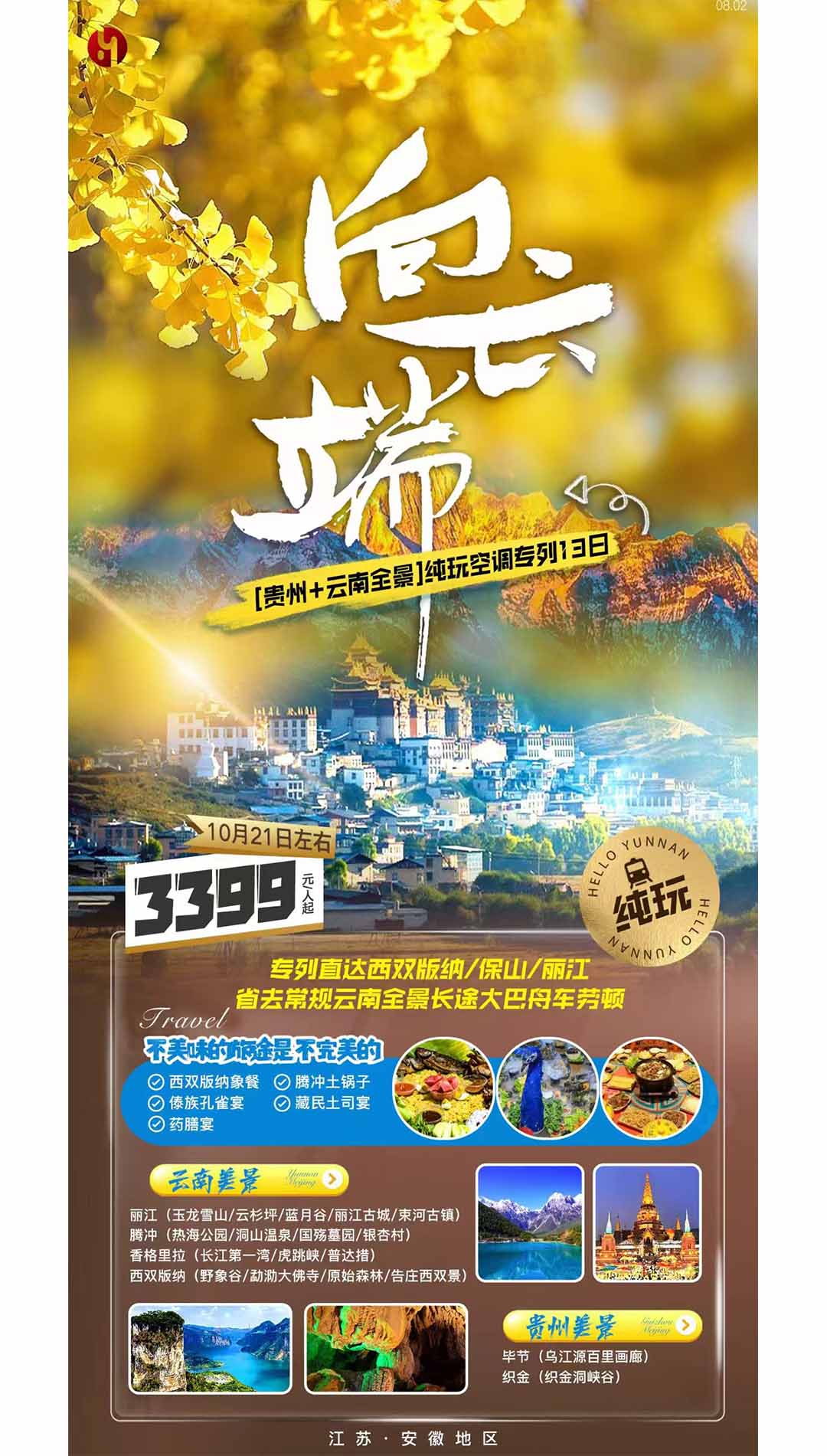 HY241021【向云端】貴州+云南全景 純玩空調專列13日游